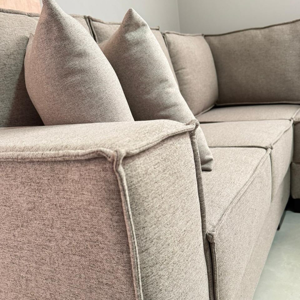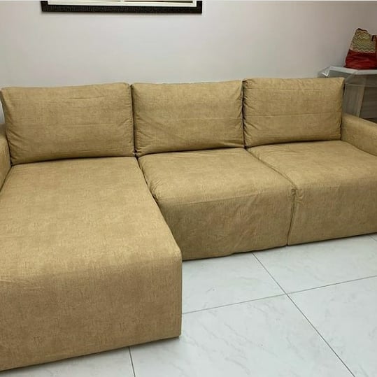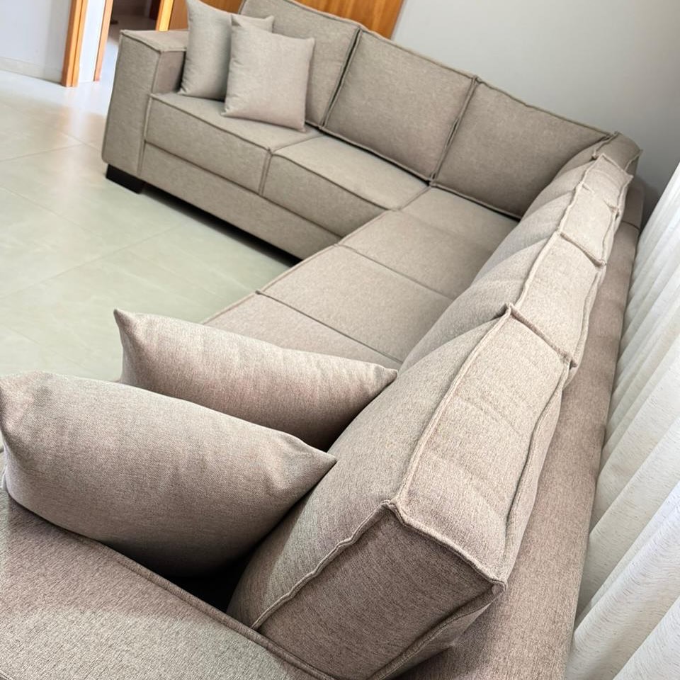 O resultado de nossa reforma entrega muito mais que um novo visual: entregamos durabilidade e ergonomia. Utilizamos espumas de alta densidade e acabamento milimétrico em linho, veludo ou couro. Veja a diferença na renovação deste sofá retrátil, onde cada detalhe foi pensado para integrar o ambiente com sofisticação e funcionalidade.